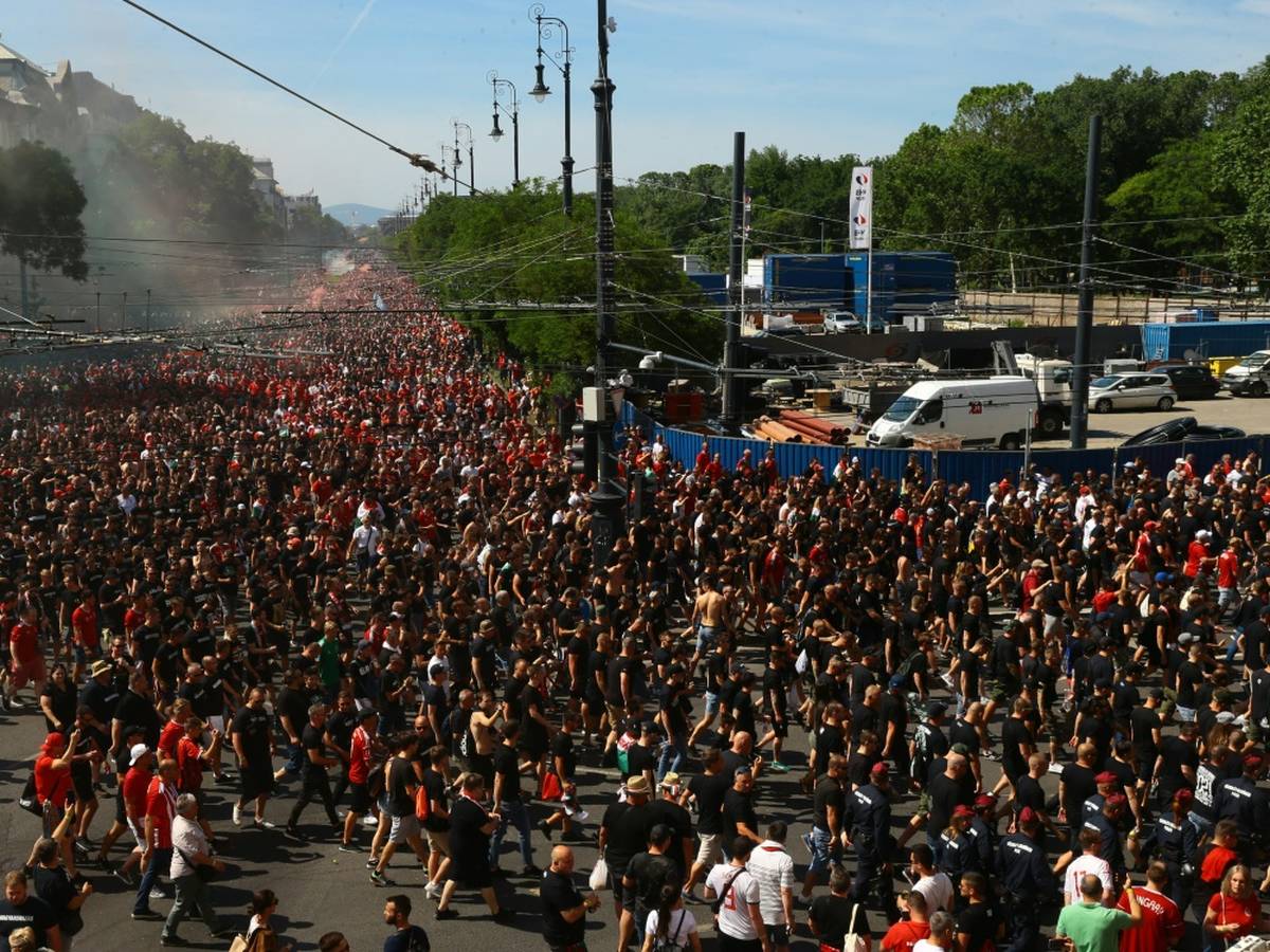 Tausende fans haben sich am dienstagnachmittag auf einen zwei kilometer langen weg vom budapester.